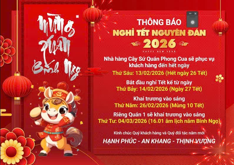 Nhân dịp kỷ niệm 50 năm ngày Giải phóng miền Nam 30/4 và ngày Quốc tế Lao động 1/5 . Nhà hàng Cây Sứ Quán Phong Cua xin được bày tỏ lòng tri ân sâu sắc đến Quý khách hàng đã luôn đồng hành và ủng hộ chúng tôi trong suốt thời gian qua.